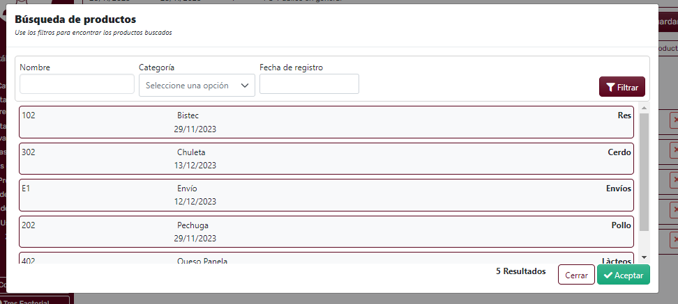 Usted podrá utilizar la sección de filtros para restringir la búsqueda: